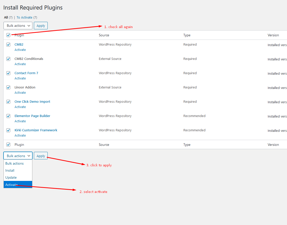 If you Installed all Plugins then follow the step below for Plugin Activate